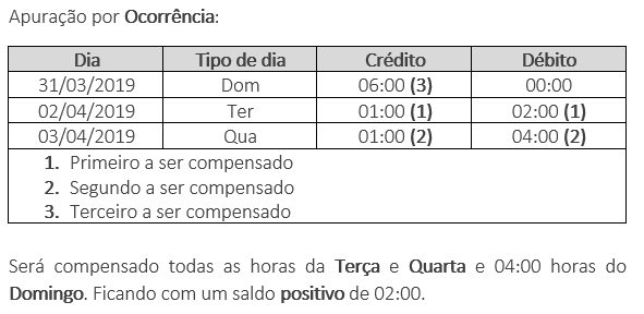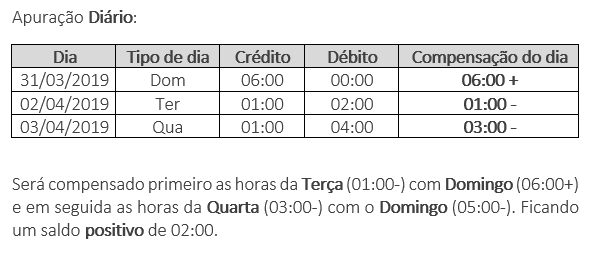Obs.: A apuração Semanal e Mensal não tem compensação por tipo de dia.