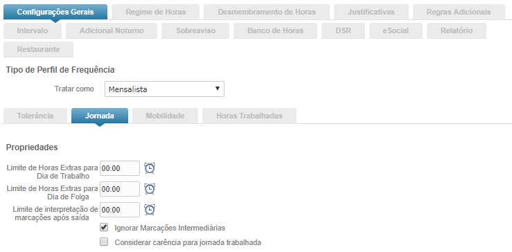 Foi desenvolvido um novo parâmetro no Perfil de Frequência, onde permite o usuário ignorar todas as marcações intermédiarias, ou seja, as marcações que foram feitas dentro do horário de trabalho do colaborador.