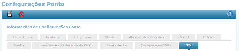 Foi adicionado uma nova aba chamadaSOC na tela de configurações Ponto.