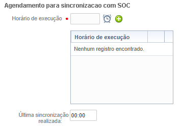 No Agendamento para sincronização com SOC terá os campos para parametrizar os períodos de execução das tarefas para consumir os atestados de horas do SOC.