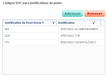 Nos Códigos SOC para justificativas do Ponto terá os campos que listará os registros de justificativas cadastradas no módulo Gen.te Monitora.