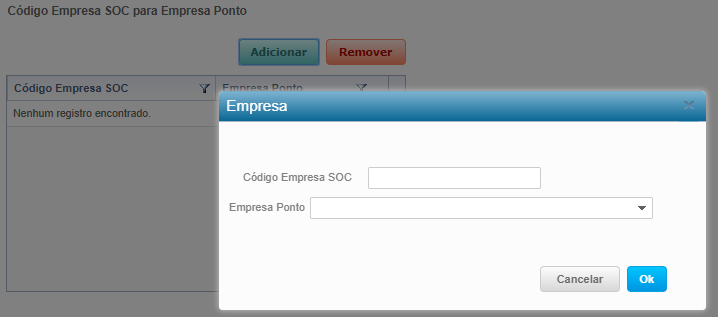 Nos Códigos SOC para justificativas do Ponto terá os campos que listará os registros de empresa cadastradas no módulo Gen.te Monitora.