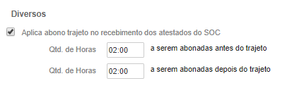 No Diversos terá os campos para parametrizar o Abono Trajeto e consumir os atestados de horas do SOC com este abono.