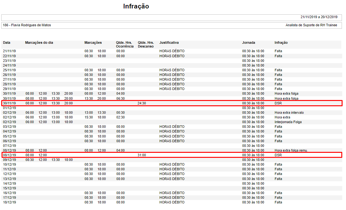 21814 - Relatório Infração (35h DSR não cumpridas)