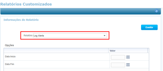 Foi desenvolvido um novo relatório chamado Log Alerta, nele será exibido todos os logs de alertas dentro do período informado no momento de emitir o relatório. O relatório será gerado no formato .csv.