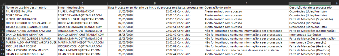 Log Alerta - Excel: