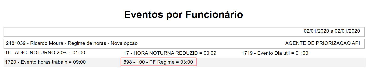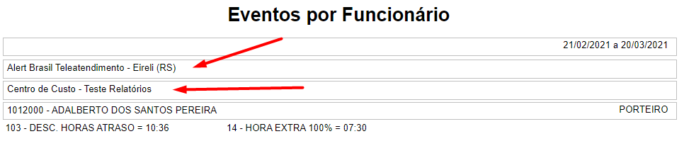 Relatório Eventos Por Funcionário com os Novos Agrupamentos: