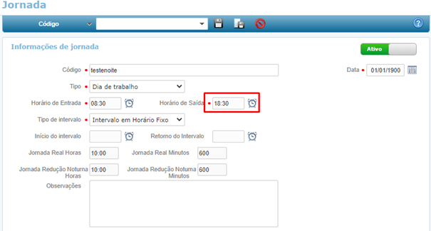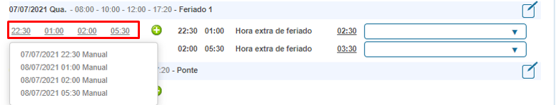 Obs.: A opção só será exibida quando horário de saída for igual/maior que 00:00.