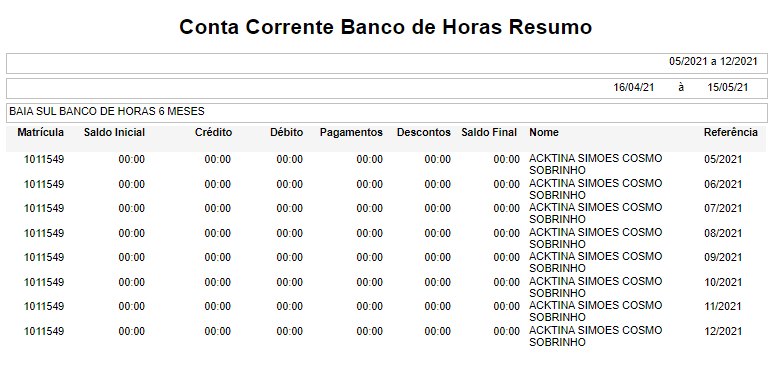 Foi feito uma melhoria no relatório Conta Corrente Banco de Horas, onde ao exportar o relatório para excel os campos código / descrição serão exibidos separadamente, cada um em sua respectiva coluna.