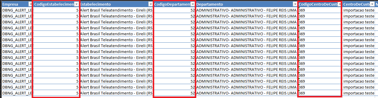Foi feito uma melhoria no relatório Compensação de Banco de Horas, onde ao exportar o relatório para excel os campos código / descrição serão exibidos separadamente, cada um em sua respectiva coluna.