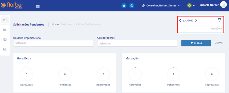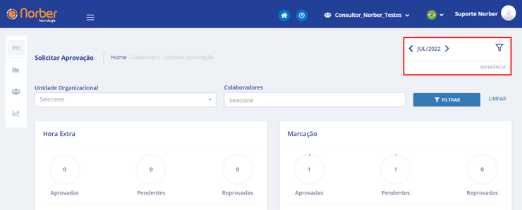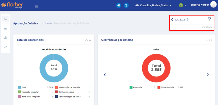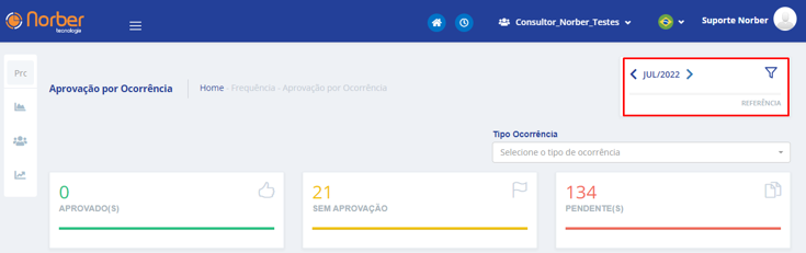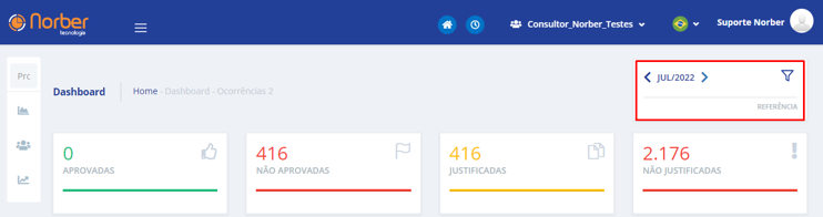 Gestão de Ocorrencias seleção dos periodos de referencia: