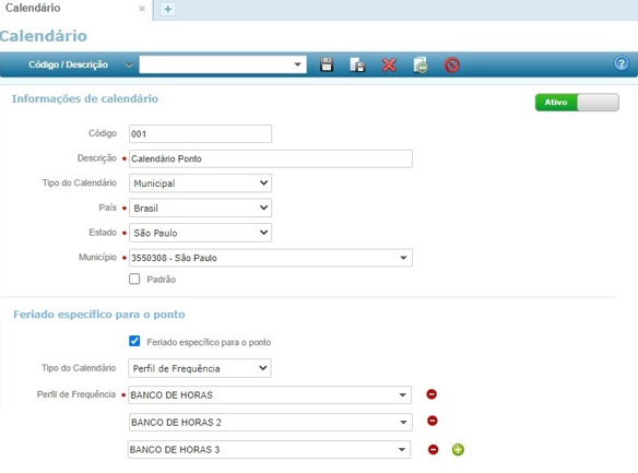Na consolidação o sistema deverá verificar se a opção “Feriado específico para o ponto” está habilitada, se estiver habilitada, deverá ser verificado qual tipo de calendário foi selecionado no segundo campo e acatar o feriado para o tipo de seleção realizada.