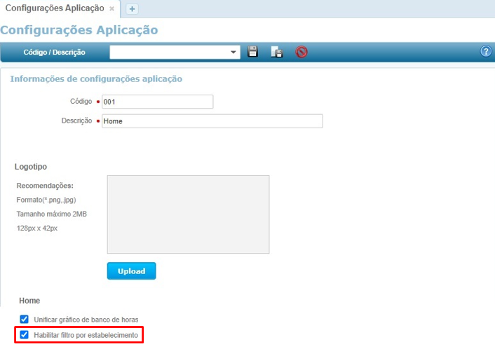Configuração de Aplicação / Nova opção para habilitar filtro por estabelecimento: