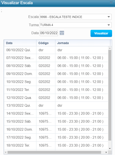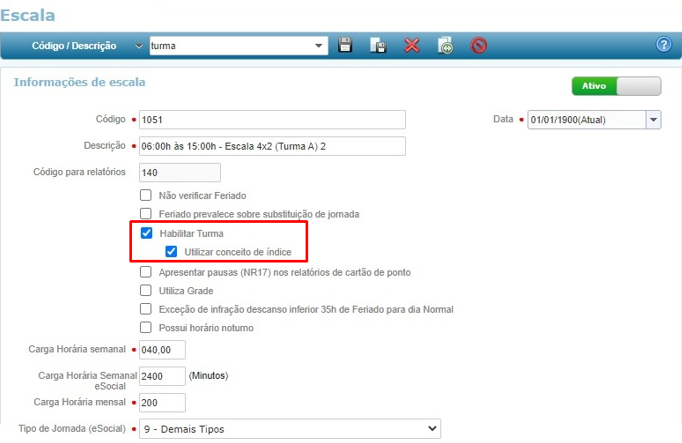 Foi feito uma melhoria onde o conceito da turma irá verificar o conceito de índice cujo a turma é indicada a partir dos dias da semana na escala.