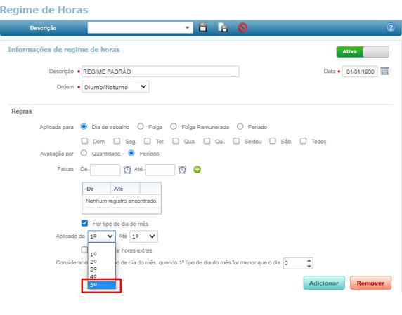 Foi feito uma melhoria na rotina de Regime de hora onde, a partir do quarto domingo trabalhado precisa gerar a folha de pagamento o quarto domingo como horas extras, sempre verificando o período de apuração.