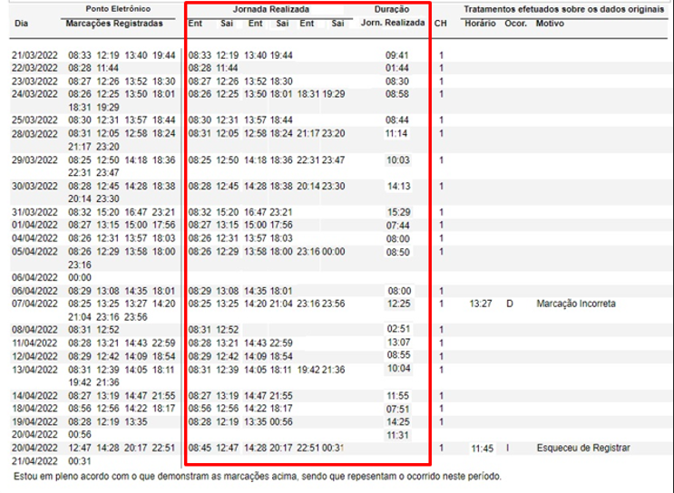 Exemplo Cabeçalho Relatório de Espelho de Ponto: