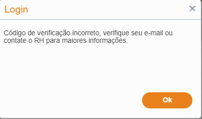 Mensagem de verificação, caso o Codigo esteja incorreto: