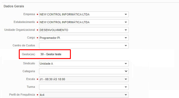Foi desenvolvido uma nova rotina onde, haverá a forma de buscar o gestor pela ficha do colaborador, podendo associar um ou mais gestores ao colaborador.