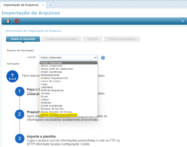 Foi desenvolvido uma nova rotina onde, será possivel realizar a importação de unidade organizacional com alterações.