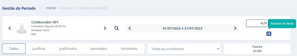 Novo ícone Resumo de Horas na tela Gestão do Período do AA: