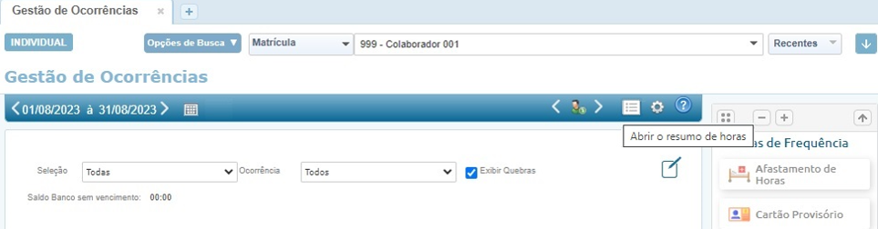 Novo ícone Resumo de Horas na tela Gestão de Ocorrências do Frequência: