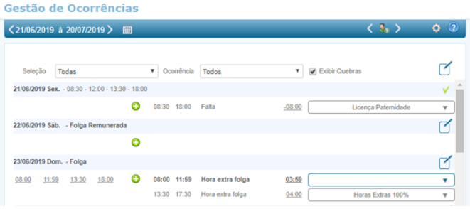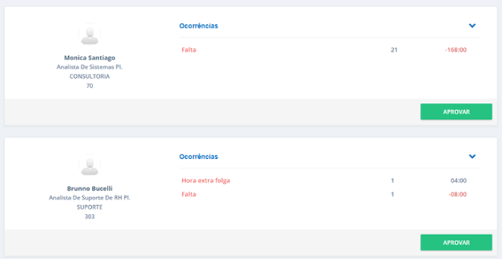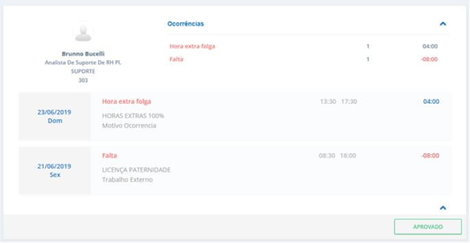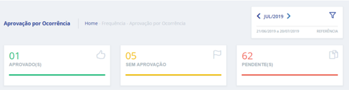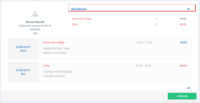 Obs: Notem que para o dia 23/06, a aprovação não foi apresentada, pois ainda existem ocorrências para serem tratadas. Este dia será aprovado somente quando não existirem mais ocorrências para serem tratadas.