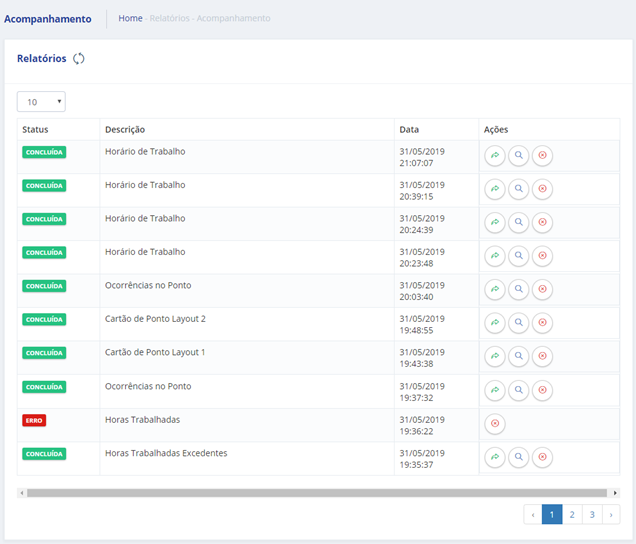 O gerenciador de tarefas do New Ponto será representado pela tela de acompanhamento, pois nela o usuário poderá acompanhar o carregamento, visualizar e/ou cancelar o processo do relatório solicitado.