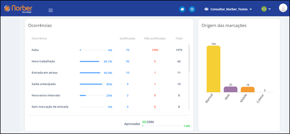 Dentro do novo Home temos o Dashboard de Origem das marcações