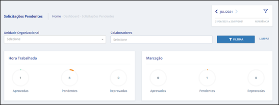 no período e a quantidade dos aprovados/pendentes de aprovação.