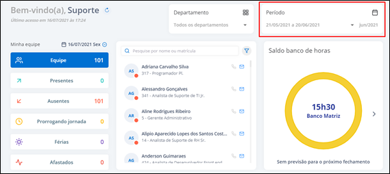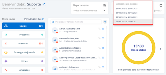 selecionar o período de apuração que deseja visualizar os colaboradores