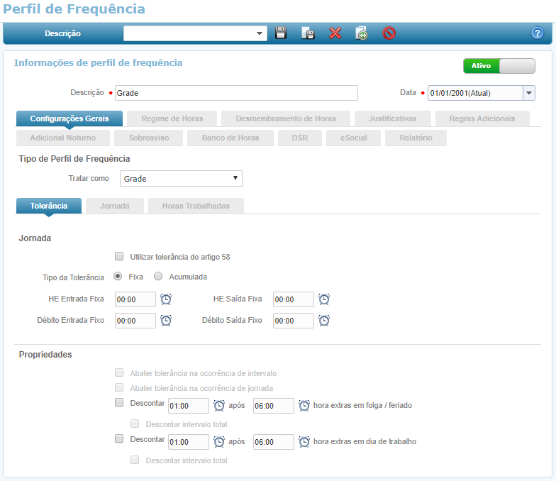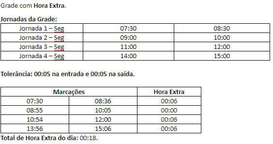 Para cada jornada do dia é aplicado a tolerância (entrada e saída);