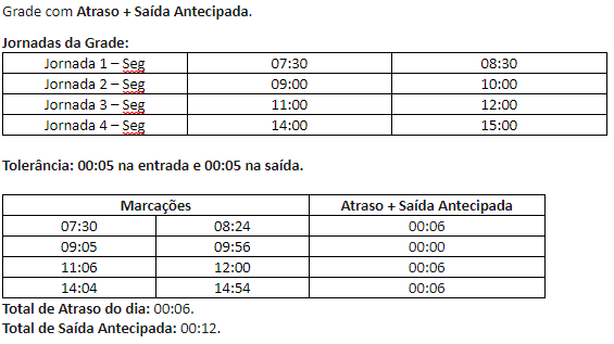 A Saída Antecipada, Atraso e Hora Extra é calculado por jornada;
