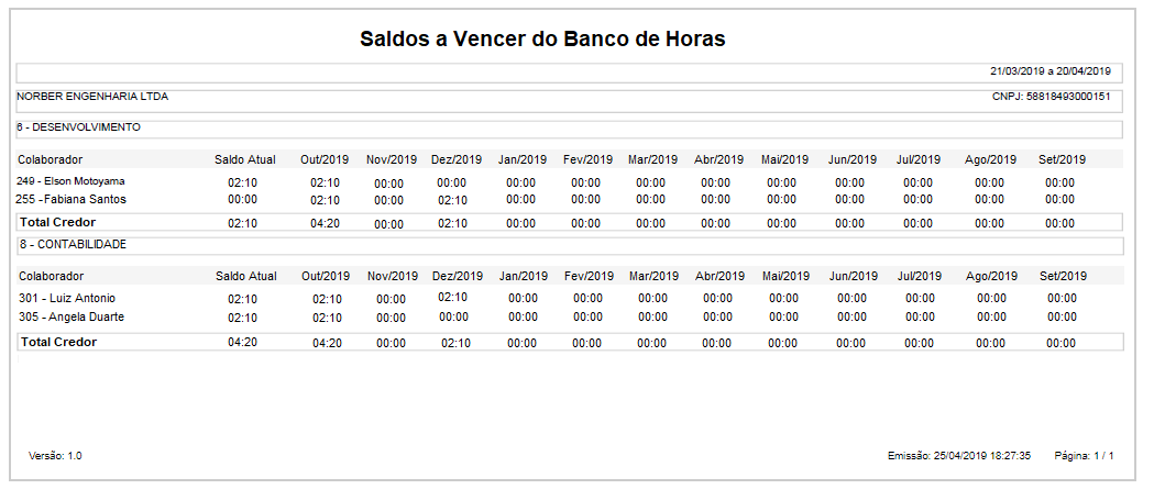 Nas colunas de saldo a vencer é exibido a quantidade de horas que vão vencer no mês;