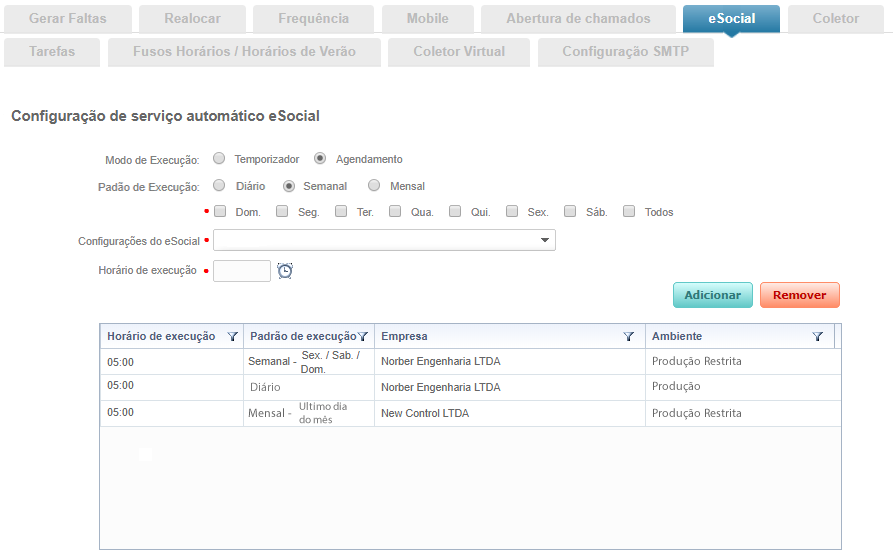 Foi adicionado novas opções na aba eSocial para parametrizar o horário e os dias que o serviço será iniciado para cada configuração do eSocial disponível no sistema.