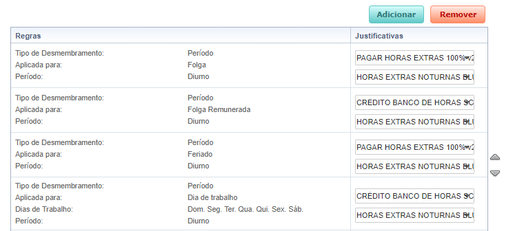 Ao selecionar a opção Justificar quando o par estiver no período noturno será considerado apenas a primeira justificativa informado, caso informe a segunda justificativa, a justificativa não será consumida. Caso preencha os dois campos de justificativas presentes na regra, a segunda justificativa parametrizada será inteiramente ignorada.
