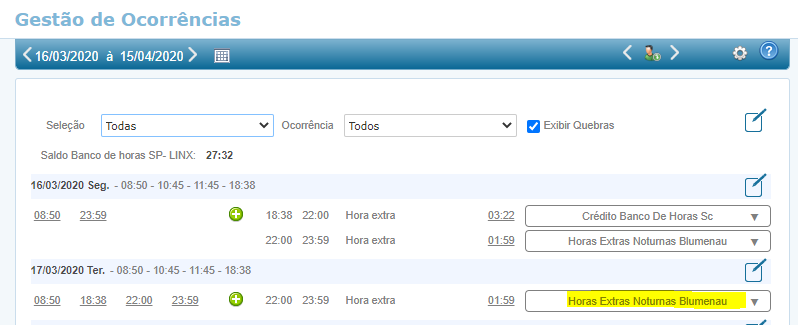 Ao selecionar a opção Justificar quando o par estiver no período noturno, o sistema irá utilizar a justificativa apenas nas ocorrências que se iniciam e terminam no período noturno.