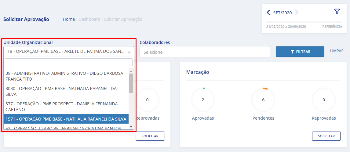 Solicitar Aprovação - Filtro Unidade Organizacional: