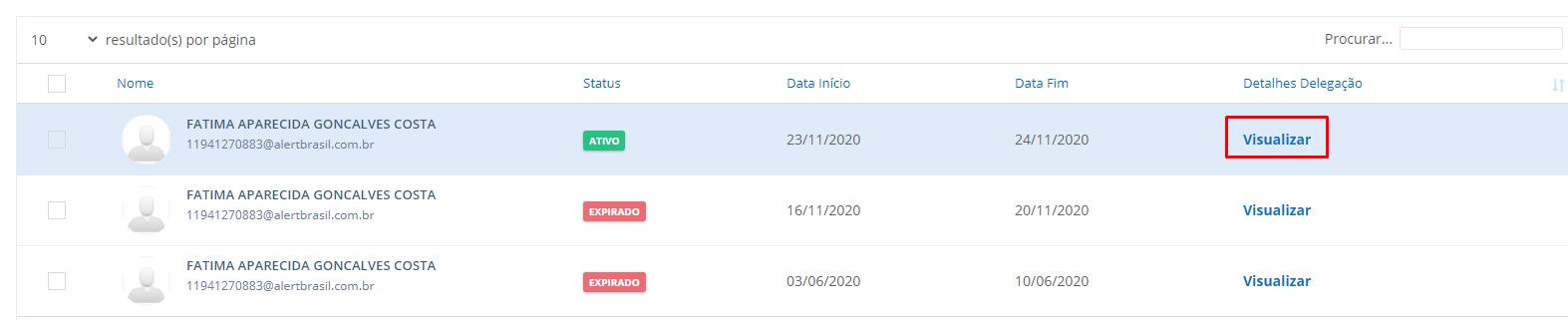 Novas Opções para a Delegação de Gestores (AutoAtendimento):