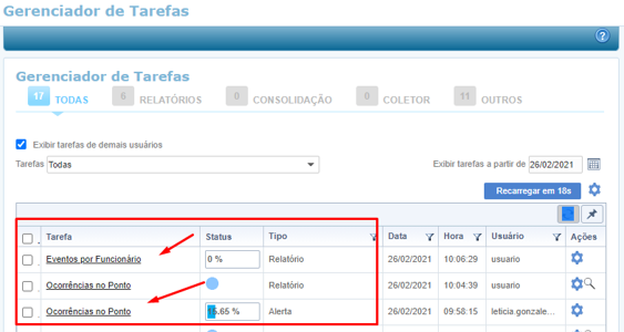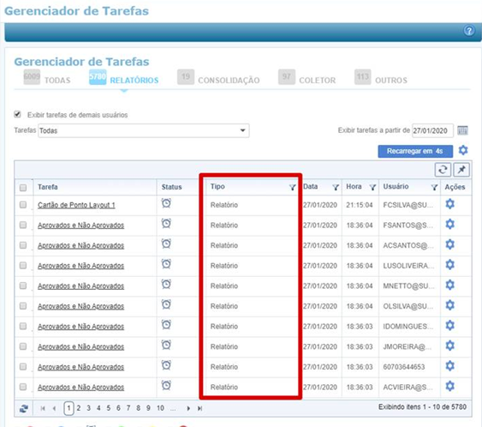 Foi alterado no gerenciador de tarefas o tipo para as tarefas geradas pelo Alerta, desta forma as demais tarefas de relatório tem prioridade no processamento. Segue abaixo exemplo da melhoria: