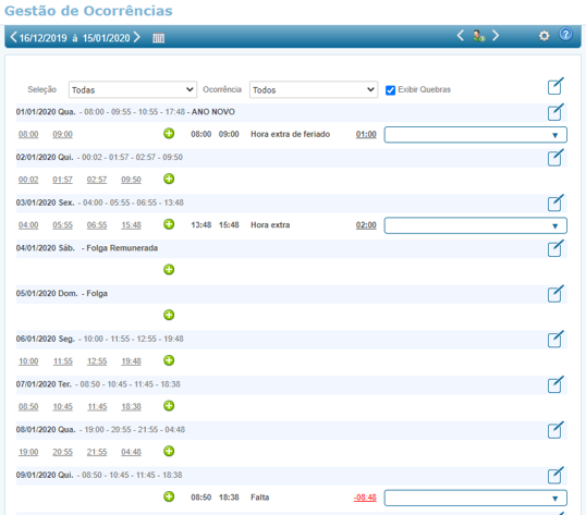 - Falta: Caso não tenha marcações no dia o sistema irá considerar como falta 08hs.