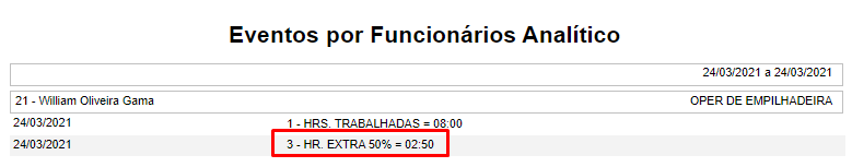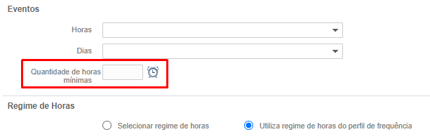 • Quando configurado o evento (Dias) a quantidade de horas mínimas não será considerada.