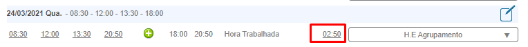 • Utilizado a justificativa que tem informado Quantidade horas mínimas: 04:00;