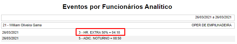 • Se a Ocorrência for Maior será gerado a quantidade de horas da ocorrência (04:10);