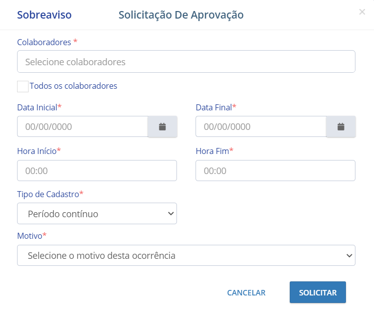 Foi implementado a funcionalidade Solicitação e aprovação de sobreaviso, igual aos recursos já existentes de solicitação de marcação e horas extras.