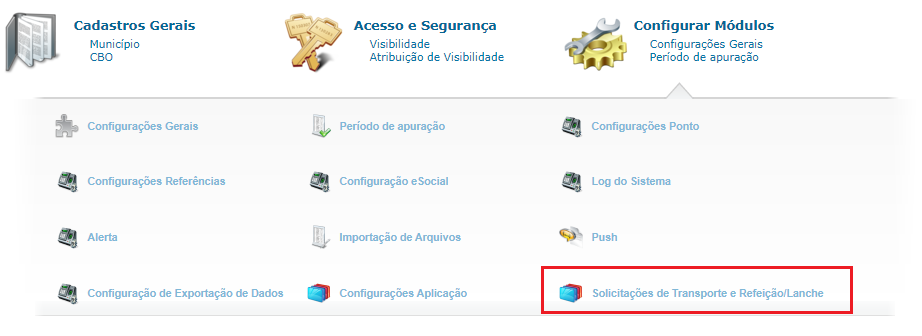 Novo parâmetro de permissão para Solicitação de Refeição e Transporte: