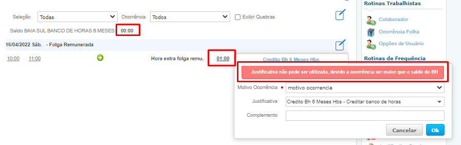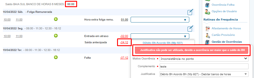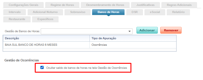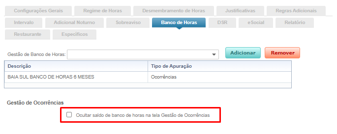 Foi feito uma melhoria na Gestão de Ocorrência onde é possível configurar se será visivel ou não o saldo do banco de horas na gestão de ocorrências. Essa configuração se encontra no Perfil de Frequência.