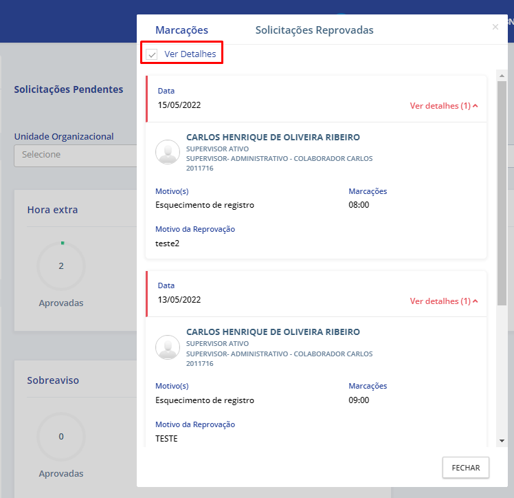 Exemplo Solicitações Pendentes (Com Ver Detalhes):