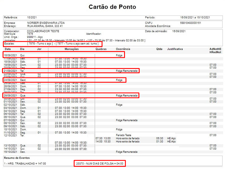 Foi desenvolvido uma nova rotina, onde será gerado um determinado evento para a folha de pagamento com o número de dias de folga, folga remunerada e feriados, para funcionários de determinados perfis de frequência e escalas.