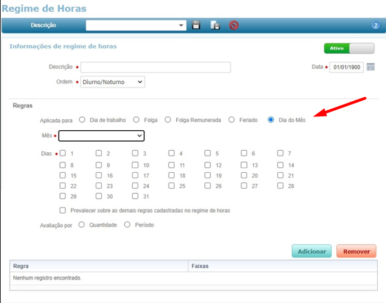 Novo checkbox na tela Regime de Horas para separação por dia do mês: