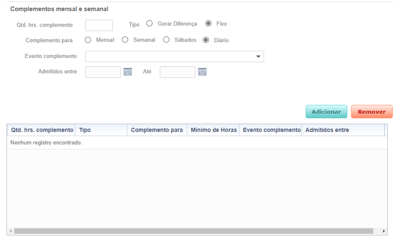 Foi desenvolvido uma nova rotina, onde será complementado a jornada trabalhada do colaborador de algumas escalas, a quantidade de 10min diário quando trabalhado, porém, gerando em evento conforme informado na parametrização de complemento. A regra deve ser aplicada para escalas especificas de cordo com a parametrização.